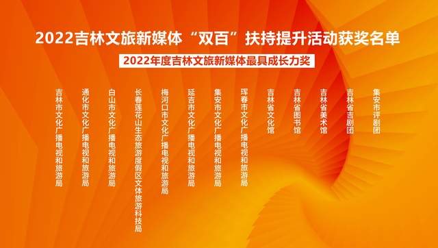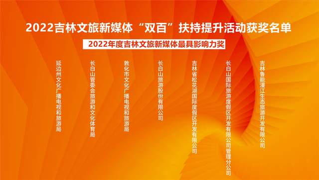 截至2022年底,已整合全省文旅新媒体账号452个,涌现了长春文旅、延边文旅、长白山文旅、敦化市文化广播电视和旅游局、长白山旅游、松花湖度假区、长白山万达国际度假区、长白山鲁能胜地等62个优质新媒体账号;通过主题各异的线上活动挖掘出优质文旅自媒体创享者账号300余个,包含了曲艺、文化、民俗、风光、航拍、旅行、运动、乡村、美食等众多类型,覆盖粉丝超过3800万,多元化、多平台的展现吉林省的魅力与精彩;延吉网红弹幕墙、长白山雾凇漂流、延边朝鲜族美食、到吉林滑雪、长白山雪地穿越等一批吉林文旅特色“破圈”,被网友熟知。
