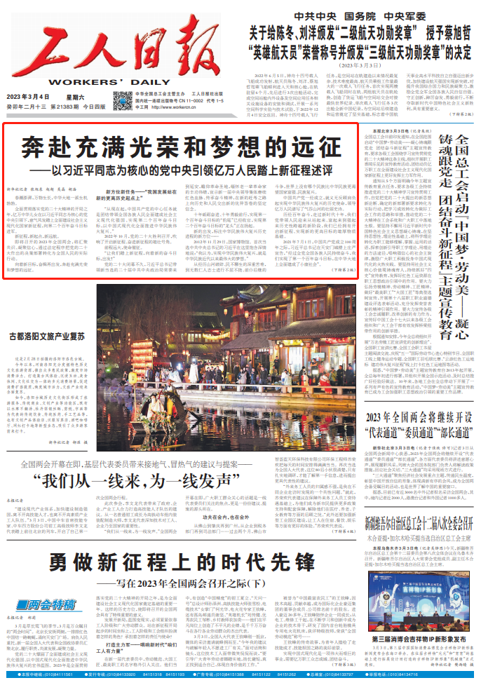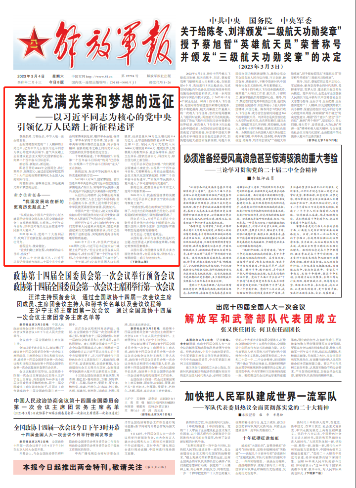 今日读报丨央媒头版头条:奔赴充满光荣和梦想的远征