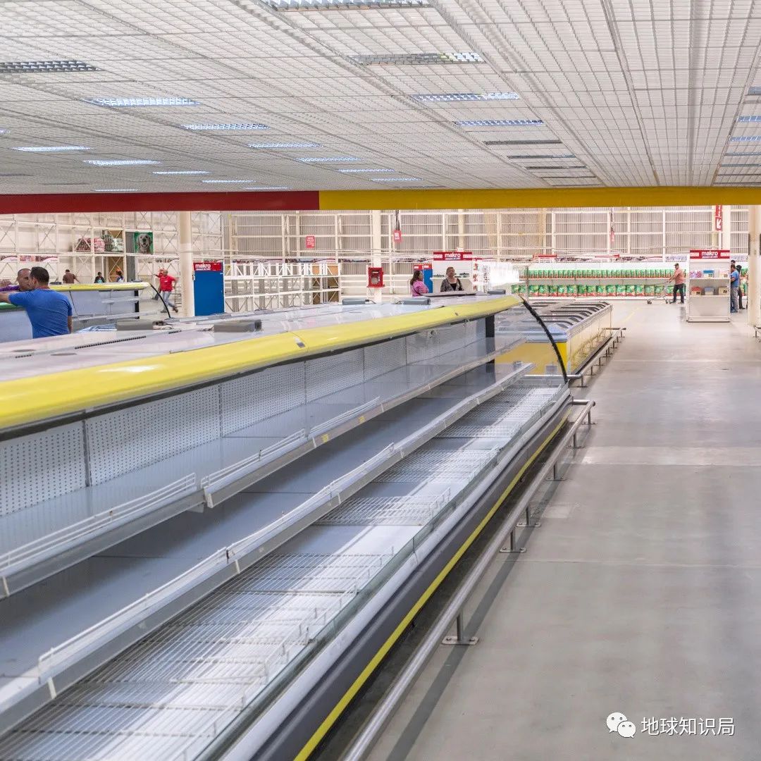 委内瑞拉人过了十几年超高福利的生活,此时委内瑞拉城市化率高达90%,本国农业基本荒废。政府手里没有美元,无法进口物资,超市货架经常空空如也。由于维持原先的大规模补贴,造成财政缺口加大,马杜罗只能用印钞来应对,造成了本国货币迅速通胀。