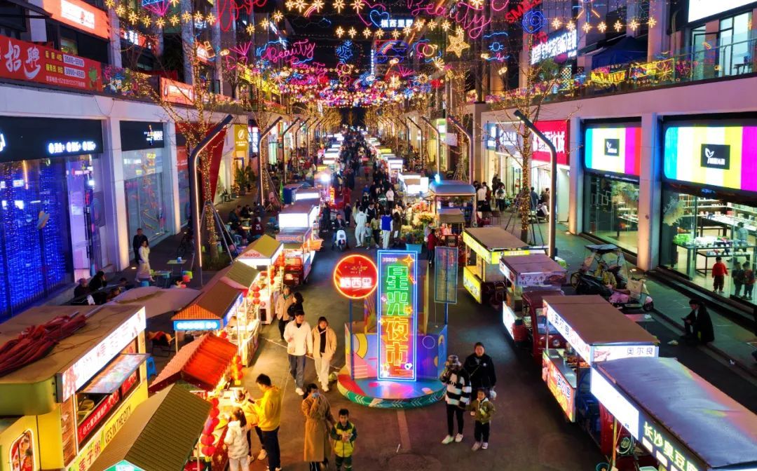 今年政府工作报告提到,完善城市特别是县城功能,增强综合承载能力。今年以来,四川省眉山市仁寿县通过发放电子消费券、开展夜间惠民经营等举措,拓展夜间的食、游、购、娱等多元消费业态,让夜经济释放消费新活力。图为仁寿县城栖西里商业街,市民在逛夜市。中新社发 潘建勇摄