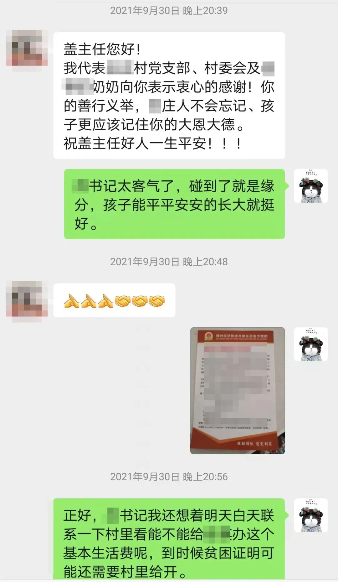 (如图:盖楠与村书记的微信聊天)