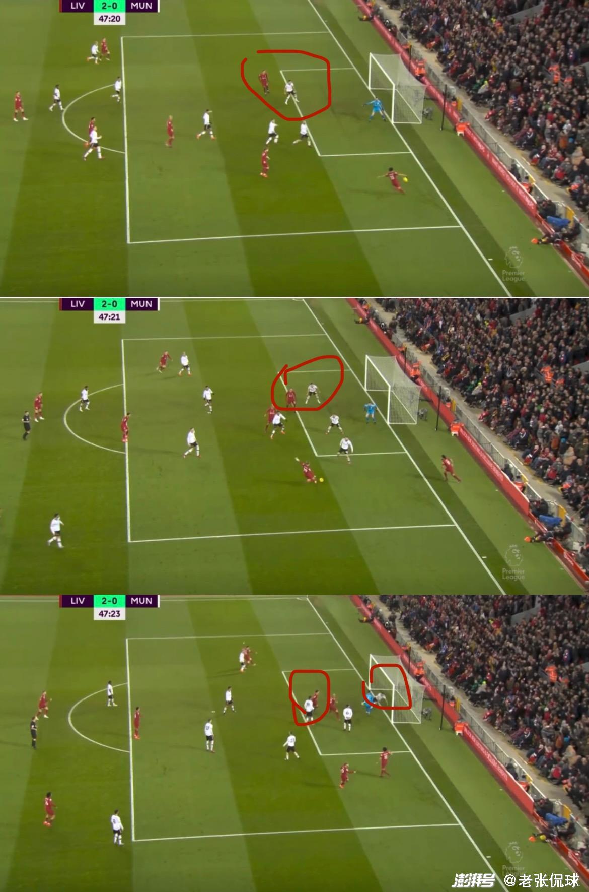 这球完全是萨拉赫能力的体现,利马防他不住可以理解,法老凭着自己的有球威胁吸引了所有曼联队员的注意力,加克波得以舒服的切入。