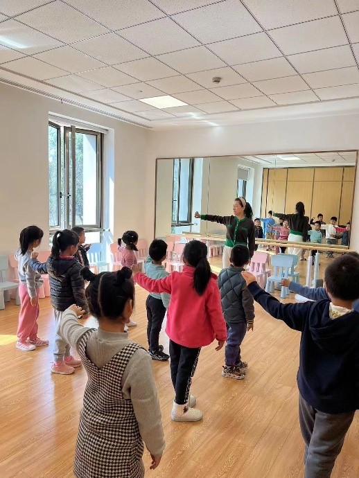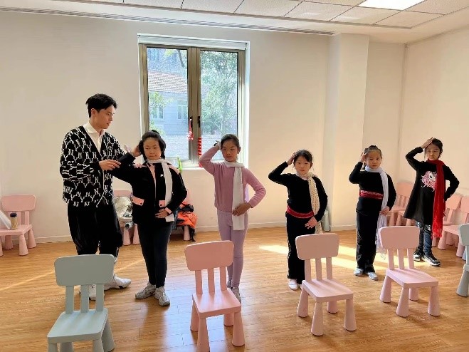 教室里,上课的老师都是沪剧院的演员,既有沪剧名家徐蓉、凌月刚,也有青年演员丁叶波、朱君尧、郜逸萍和沈佳妮、宋雅妮等,从演员变身老师,他们都下了不少功夫。从趣味沪语童谣入手纠正咬字发声;用沪剧经典角色cosplay体验,教会手眼身法步的动作要领。在沪剧选段教唱时,一对一纠正发声位置,提升唱腔技巧。所有这些,都是希望寓教于乐,提升孩子们的兴趣。