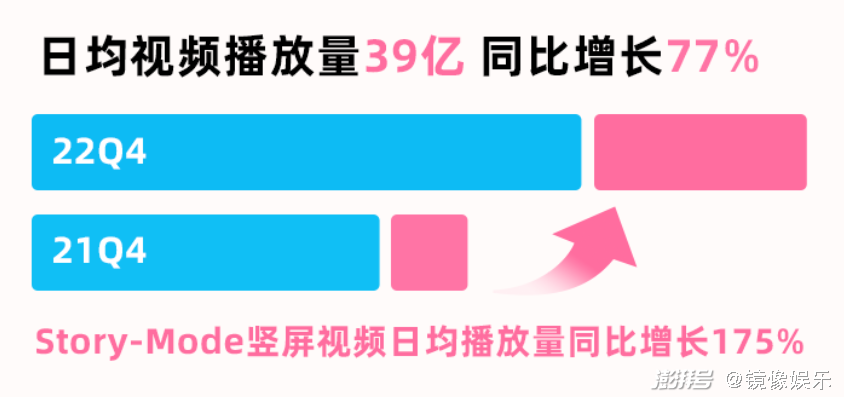 财报数据显示,2022年第四季度,在社区内容整体日均播放量同比增长77%的前提下, 2022年第四季度Story-Mode竖屏视频日均播放量同比增长175%。且在平台广告业务逆势增长的过程中,第四季度效果类广告收入同比增长超50%,这其中同样离不开Story-Mode竖屏视频所构建的新广告场景。