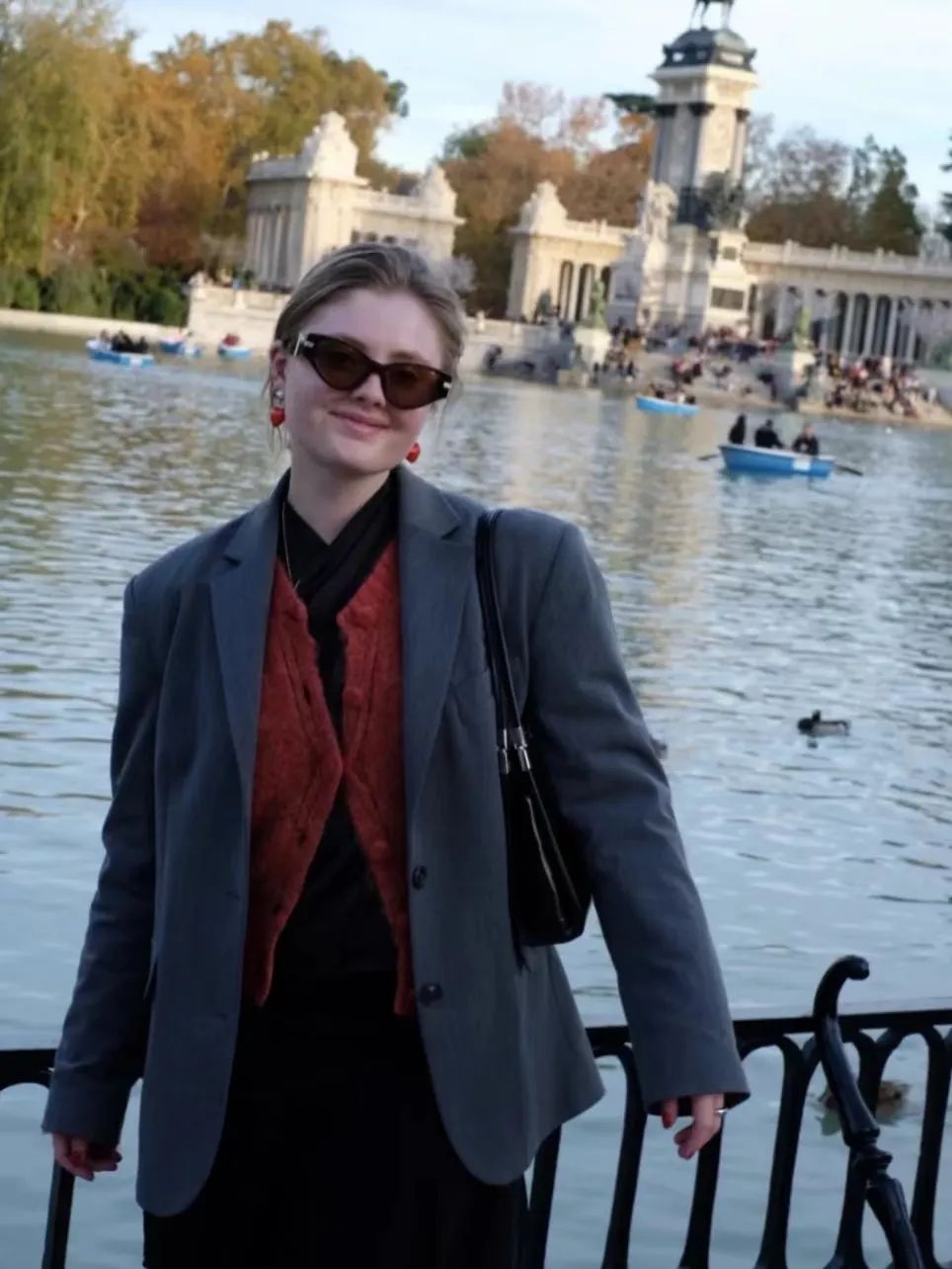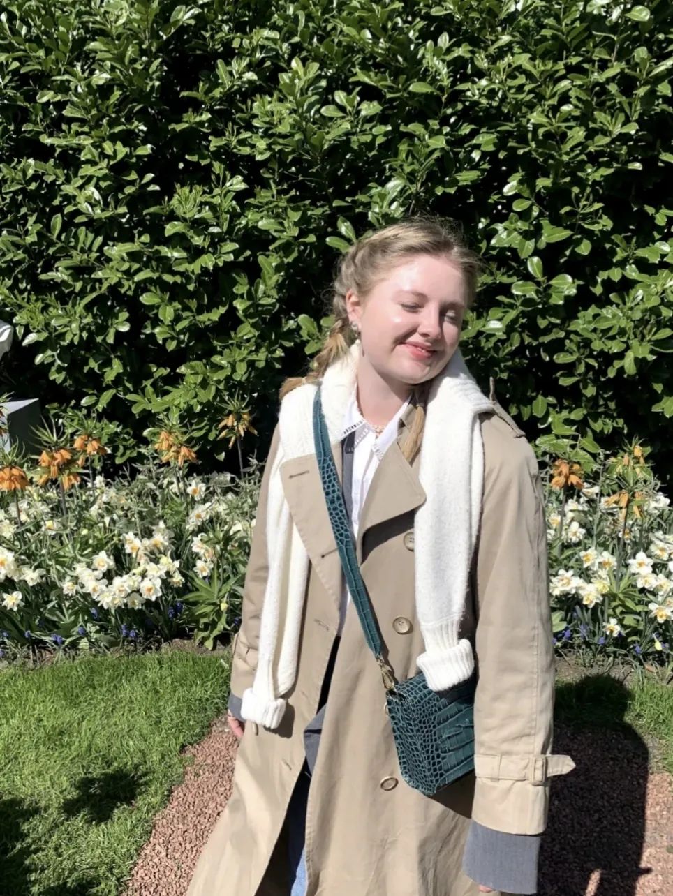 春天里面穿着精心搭配的小裙子,外面披一个外套,温度掌握的刚刚好。