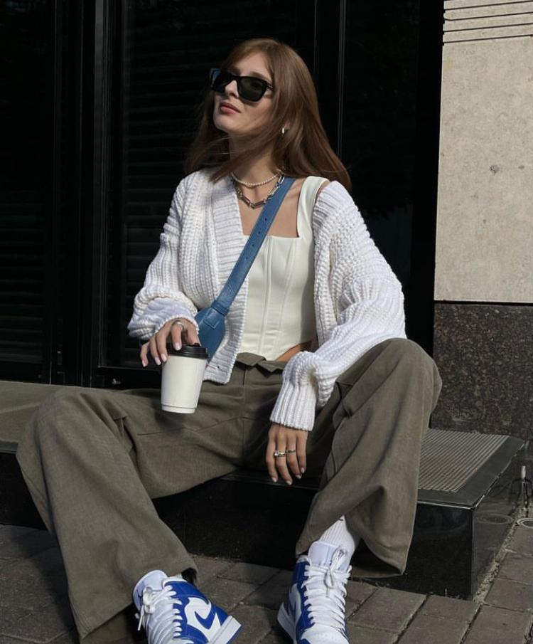如果真的很喜欢针织外套,选择织得比较结实,材质比较硬的针织衫更加有版型,要让人觉得是衣服的这么设计的,而不是肉撑起来的。