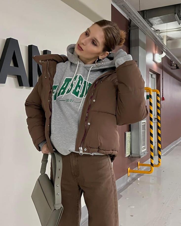 慎重选择拥挤的连帽卫衣,上半身像是鼓成了一团。