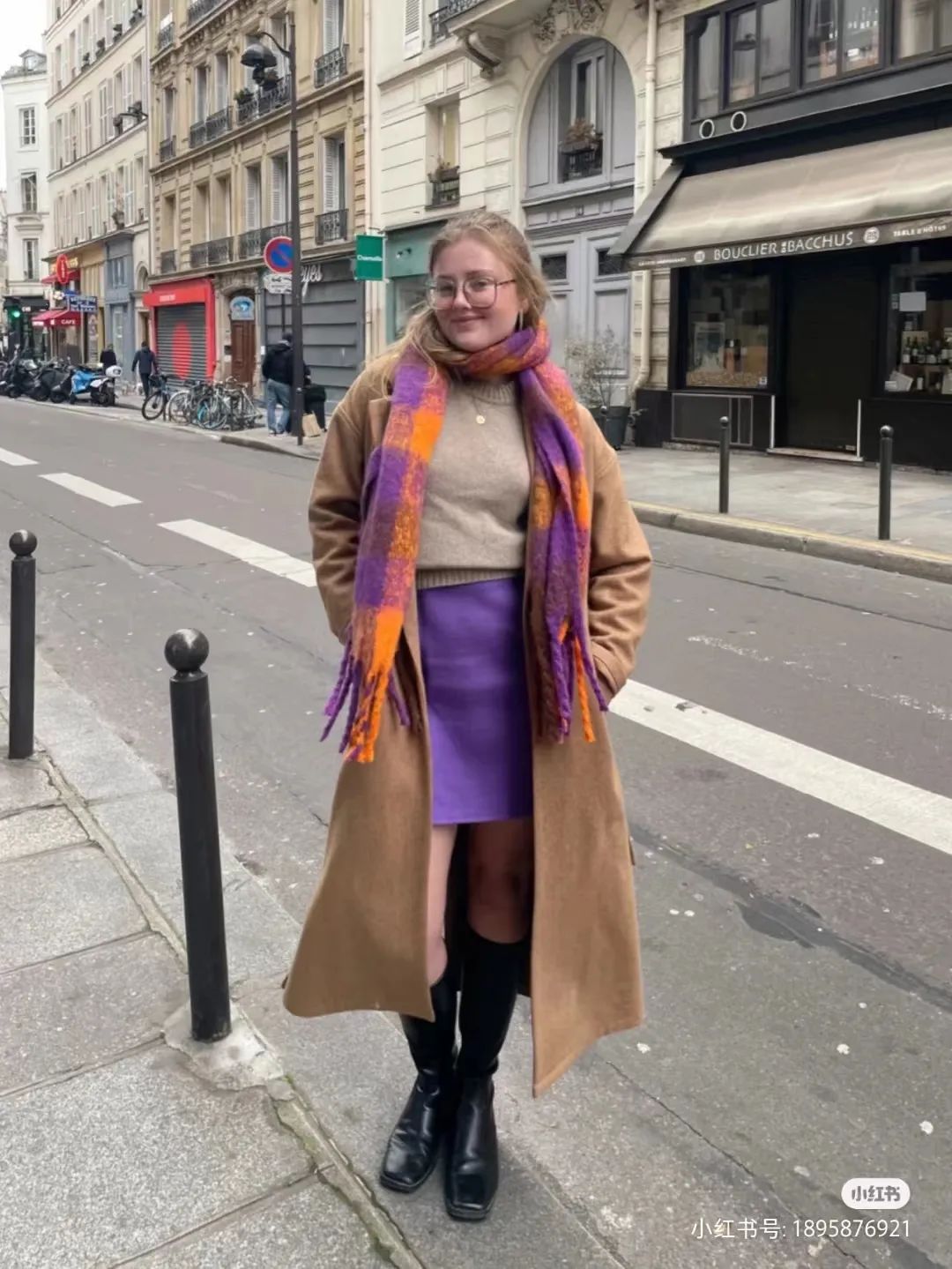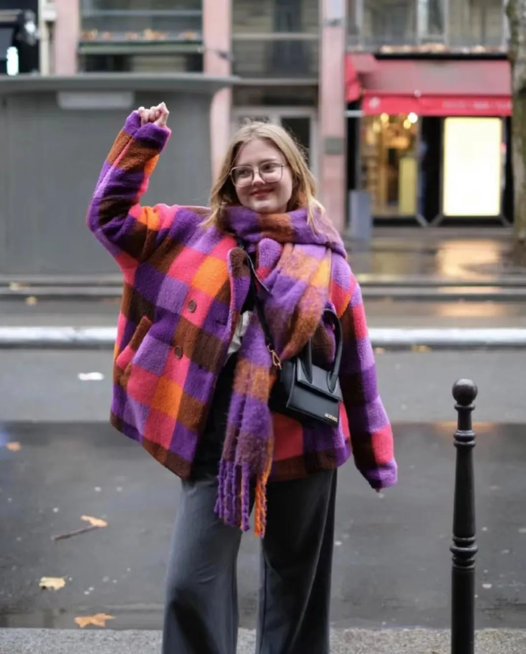 一条彩色的围巾、红色的马甲,就可以让人忽略肩膀的宽度。没有刻意的遮遮掩掩,效果非常自然。