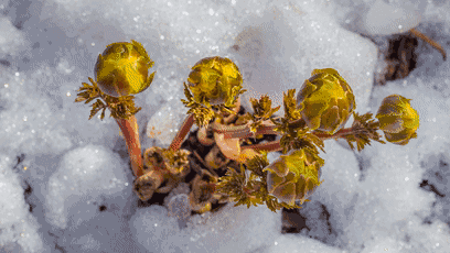 尽管此时的长白山地区依然寒风凛冽,但冰凌花不畏严寒,冲破冻土坚冰,在冰天雪地中悄然开放。