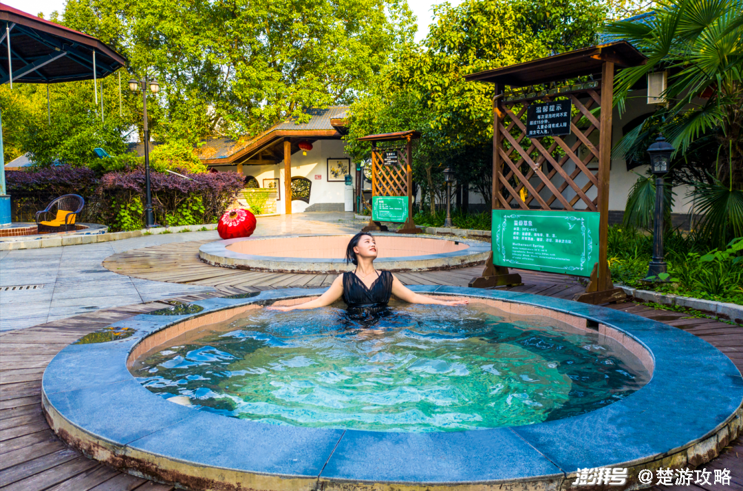 楚天瑶池温泉是“华中第一泉”的沸潭牌坊所在地,内有十大类40多个功能各异的特色温泉池,集天然度假温泉、园林别墅、星级客房、特色餐饮、康乐休闲、洗浴桑拿、理疗养生、商务会议为一体。