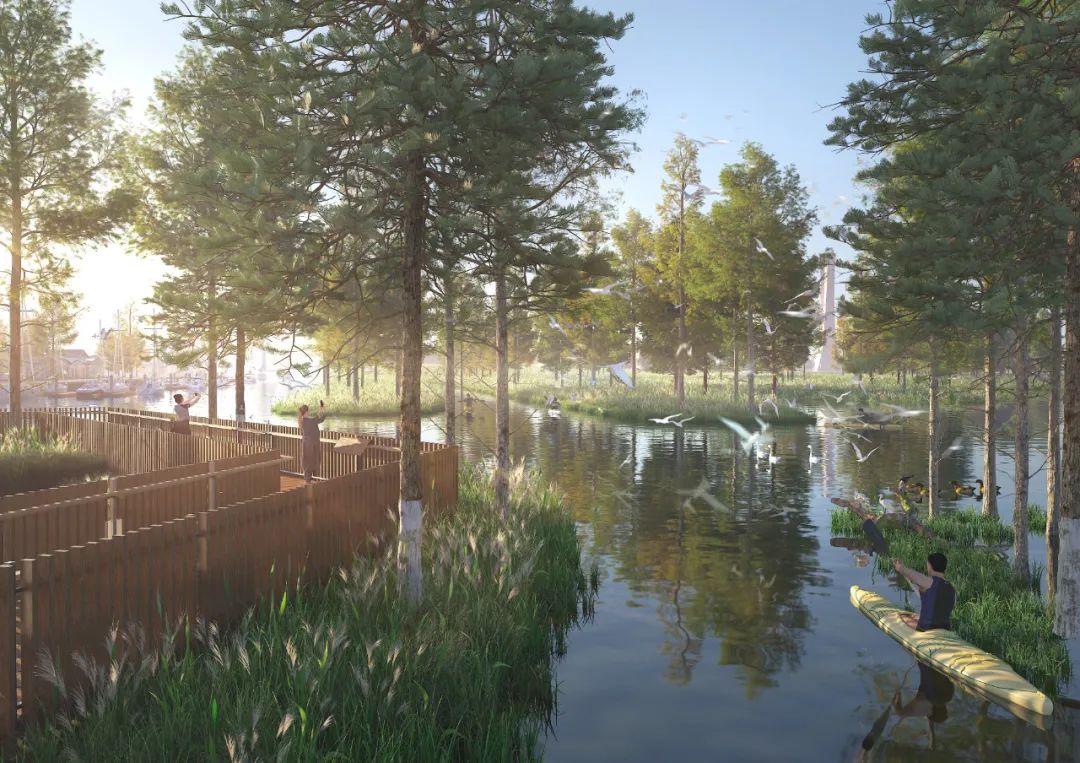 这里将形成集水上巴士、云轨、骑行道、跑步道、慢行道为一体的
