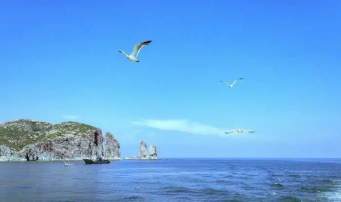 烟台长岛,地处胶辽半岛之间,南北纵列于渤海海峡,由151个岛屿组成,岛陆面积59.26平方公里,海域面积3242.74平方公里,海岸线187.64公里,有居民岛10个,人口4.1万人。