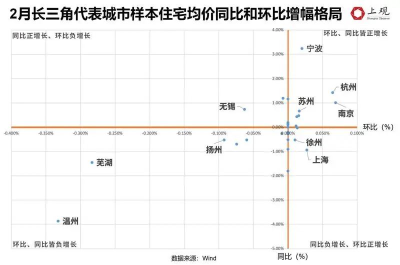 根据中指研究院发布的百城房价数据,2月全国仅有11个城市房价环比上涨,这其中长三角占了4城,包括南京、上海、苏州、昆山。