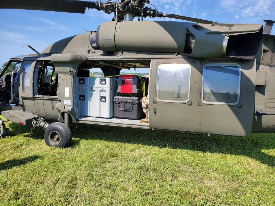 在FTUAS“竞技表演”中马丁无人机公司的V-BAT展示了可以通过比CH-47更小的UH-60“黑鹰”来运输的能力。