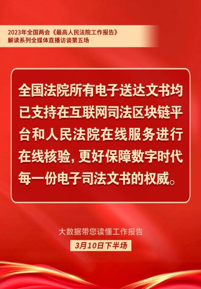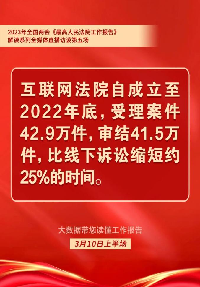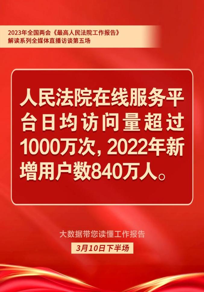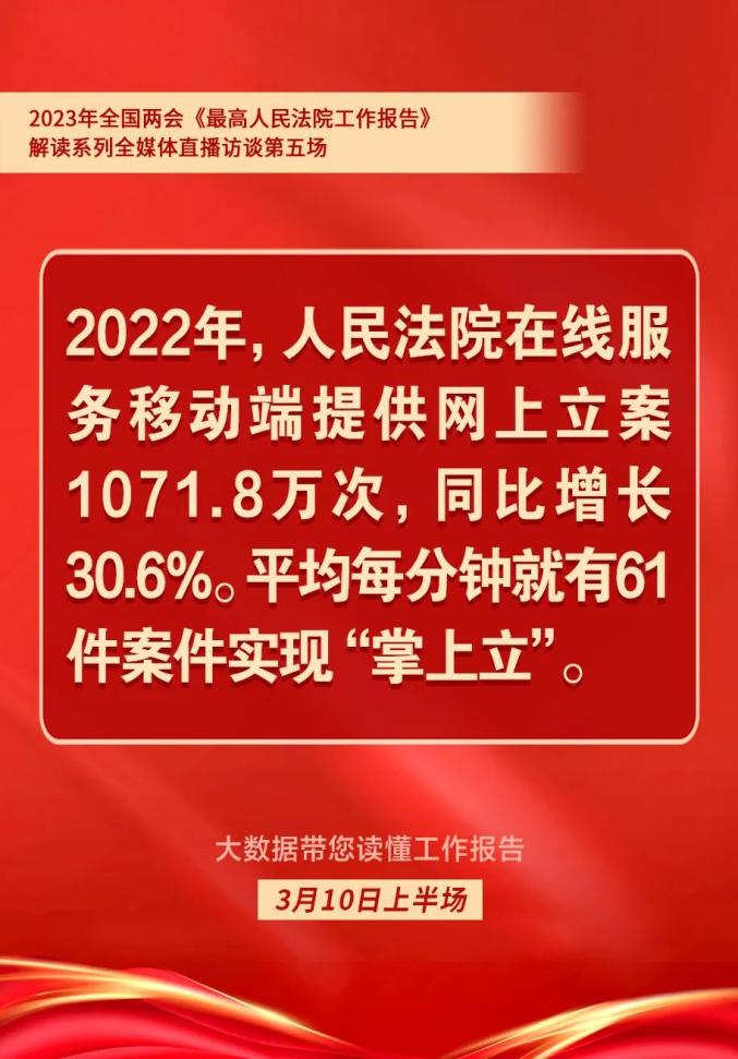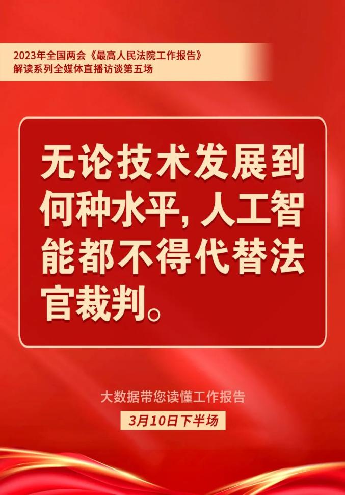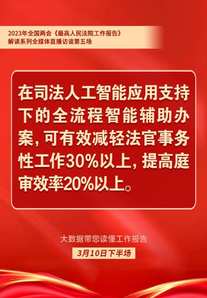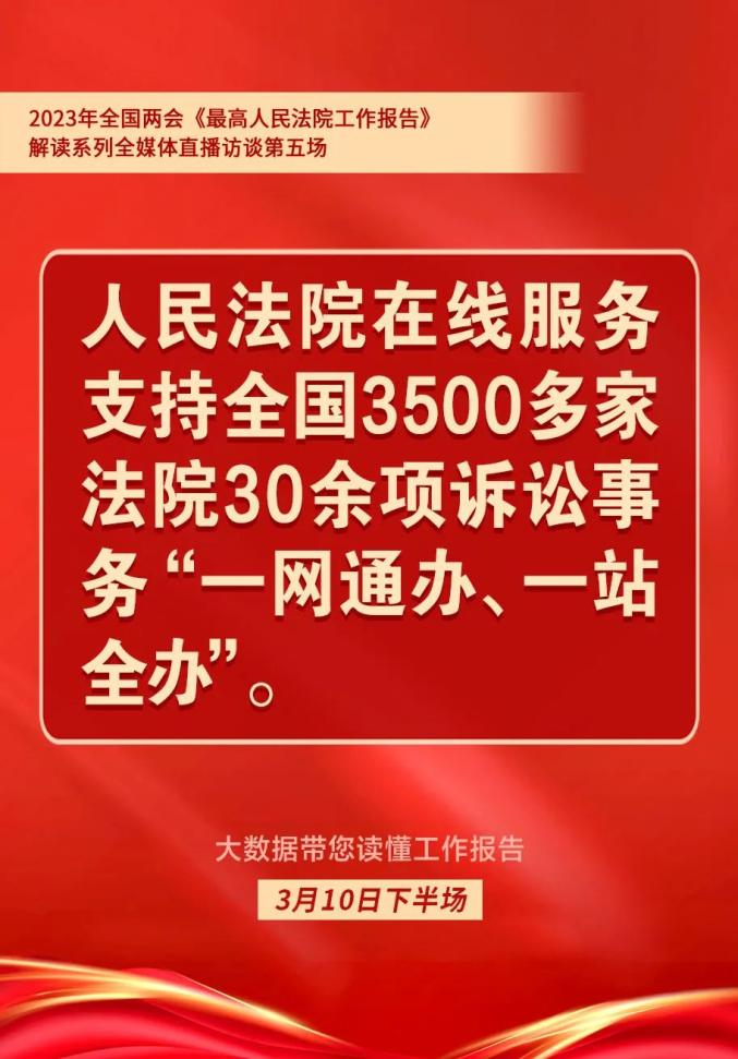 今天上午,最高人民法院举办2023年全国两会《最高人民法院工作报告》解读系列全媒体直播访谈第五场活动,最高人民法院审判管理办公室主任廖向阳、最高人民法院信息中心副主任陈奇伟在线解读工作报告。