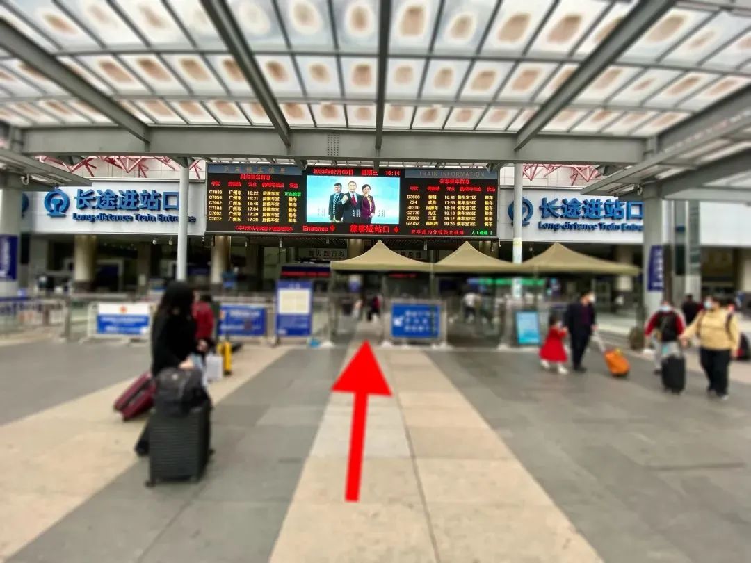 长途车进站口位于地面层,与公交车场站处于同一层,购买“K、T、Z”开头的长途普速列车、“G、D”开头的动车组列车车票的旅客,请由此进站。