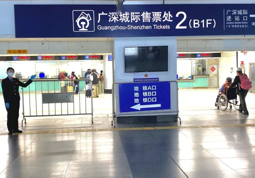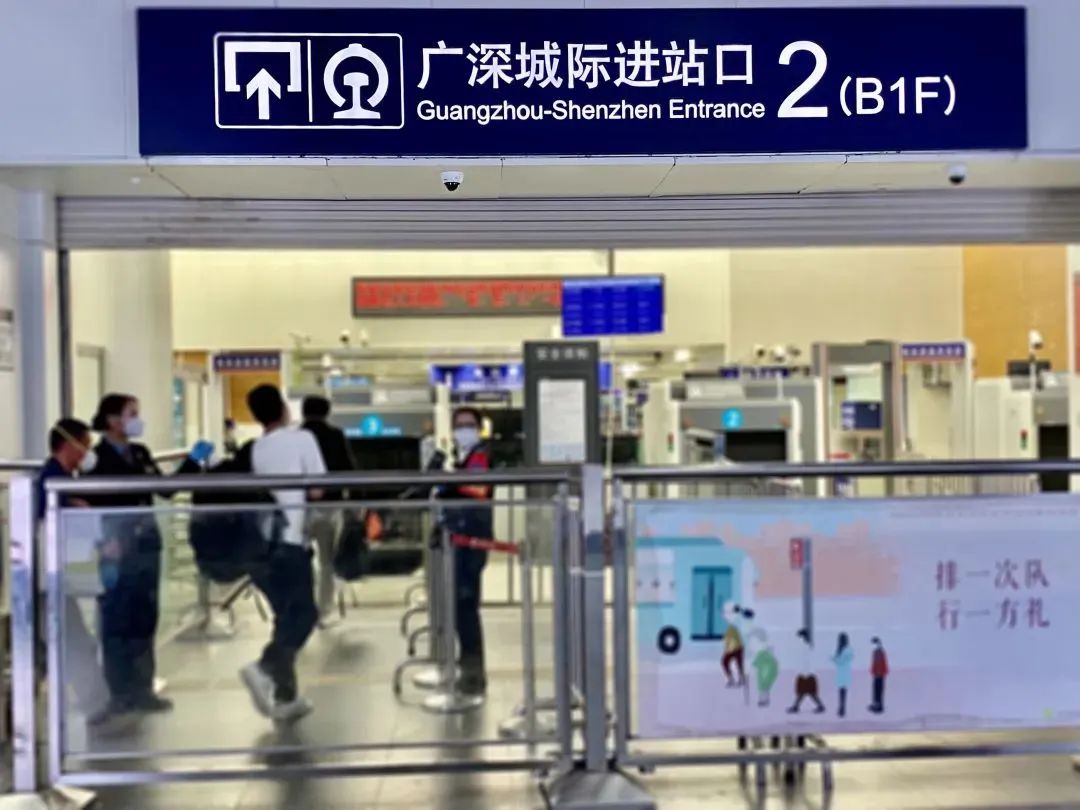 广深城际进站口位于负一层,由地面层长途车进站口处乘坐扶梯可快速到达,乘坐地铁1号线出来后上行一层即可来到广深城际进站口(不要走到地面层哦)。购买广深城际列车“C”开头车票的旅客,请选择该进站口进站乘车。
