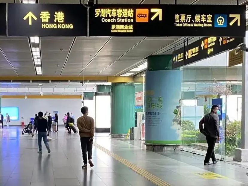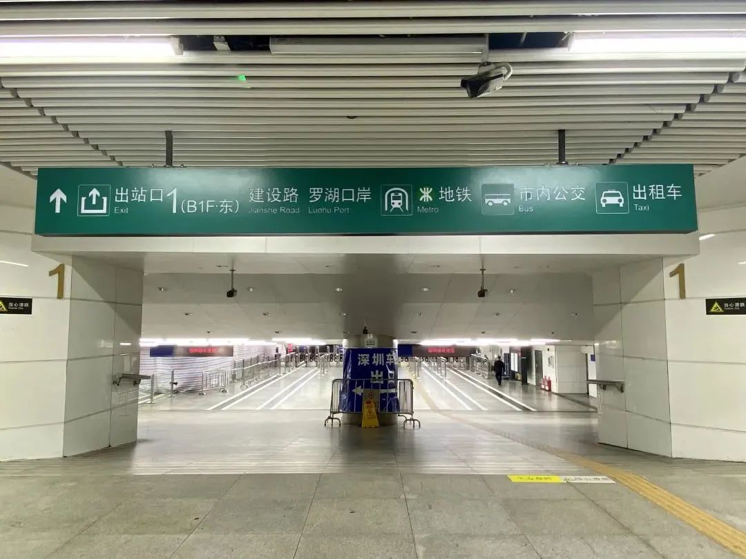 出站后,在负一层沿右手方向直走,至尽头即可前往罗湖口岸、罗湖汽车客运站。