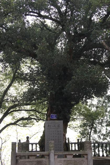 将军岩,以将军祠为主要景观。将军祠,又叫狮岩古寺。据说,将军岩最早在唐代建寺。而我们所见到的寺庙,重建于1989年7月。寺前崖上有古罗汉松一株,高数丈,虽经历千百多年的风风雨雨,仍老干虬枝,叶稠荫翠,亭亭如华盖。树前立有一块石碑:根据省文物考古专家研究判断,于1400年前培栽。1998年腊月吉旦立碑。2003年10月,兰溪市人民政府挂上浙江省古树名木保护牌,并列入一级保护等级。1200年樟树