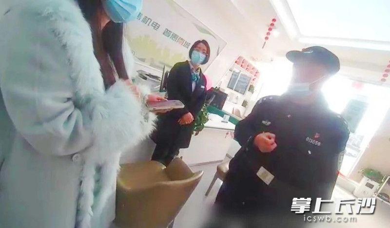 民警和银行工作人员对市民进行劝阻。