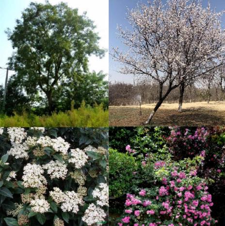 从观赏彩叶杜梨、白绢梅、四照花、杜鹃、杏梅、丁香、野蔷薇、丝绵木、琼花、桔梗、荚蒾等开花植物烘托春季的春花烂漫;