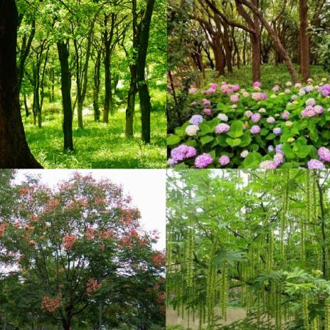 待树叶繁茂、覆盖成荫,辅以观赏绣球花等夏季开花植物,营造夏季的佳木葱茏的景象;
