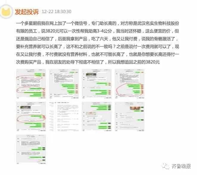有消费者反映自己在直播间购买了一款增高产品,花费了394元,当时商家承诺用完后如果身高增高不足5厘米可以全额退款。但消费者在使用完成后身高没有任何变化,联系客服时发现,店铺居然马上要关闭。还有消费者反映,自己在网上联系到一个销售人员,对方称他们公司的产品可以帮助消费者长高3-4厘米。消费者花费3820元拿到商品后,吃了6天发现没效果。再次联系销售人员时,对方称消费者的“骨骼激活了”“继续补充营养材料就可以进入生长状态了”,不过营养材料售价3980元。消费者认为自己受到了欺骗。