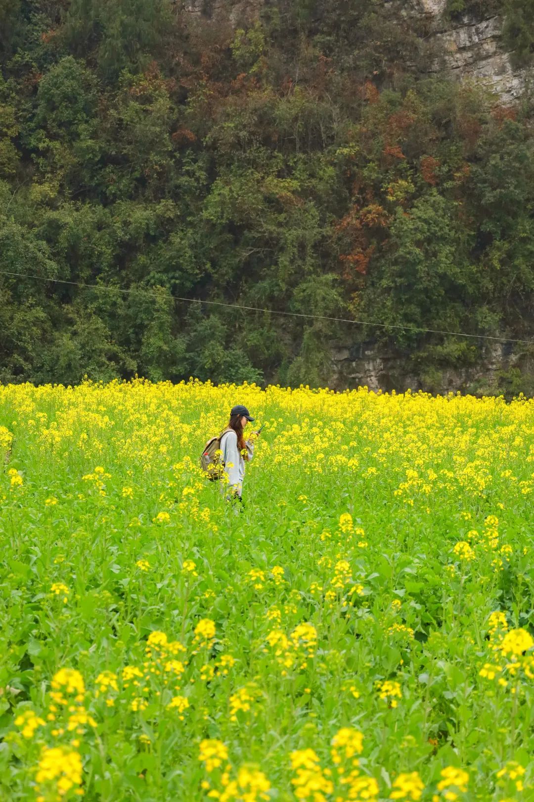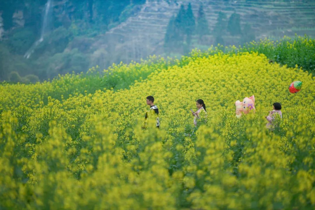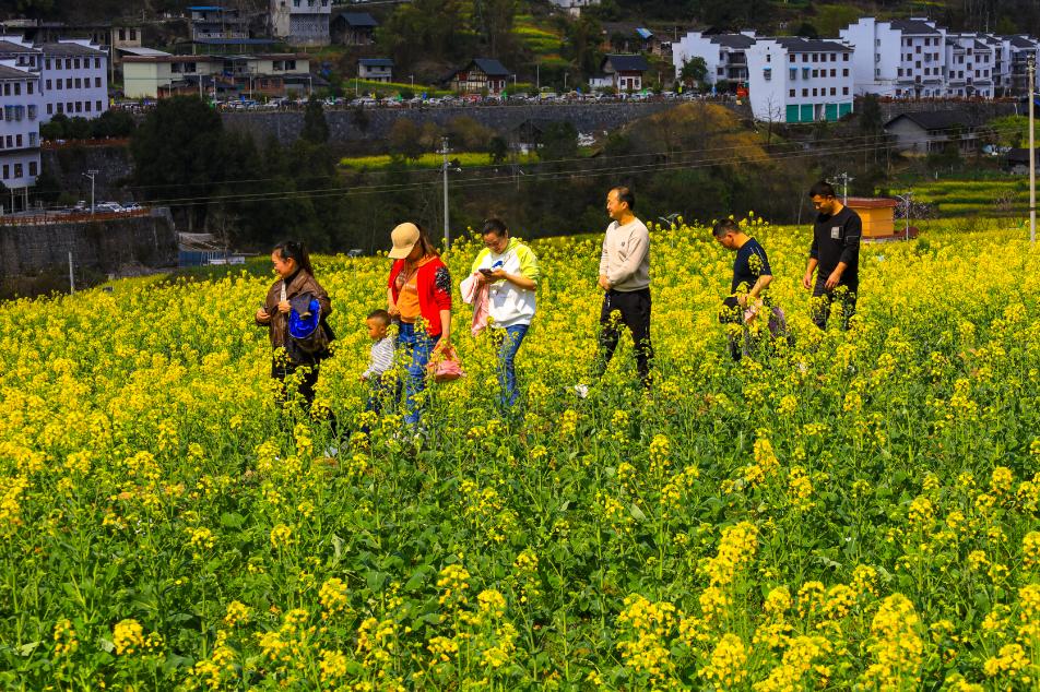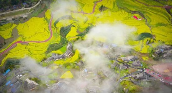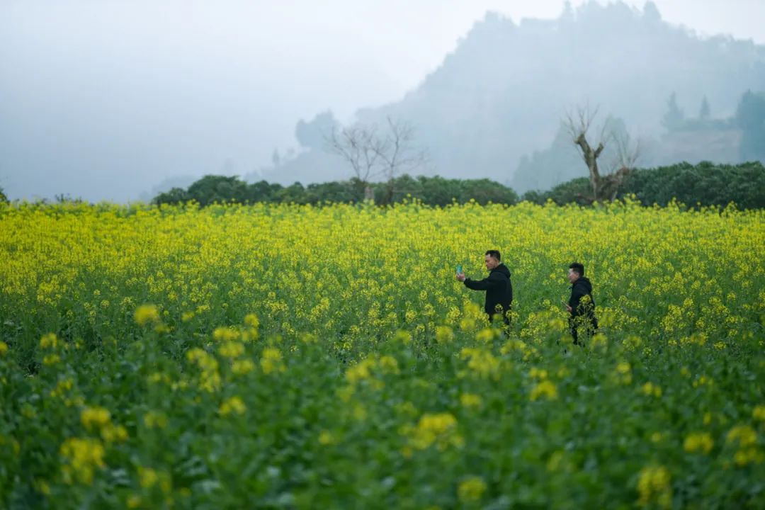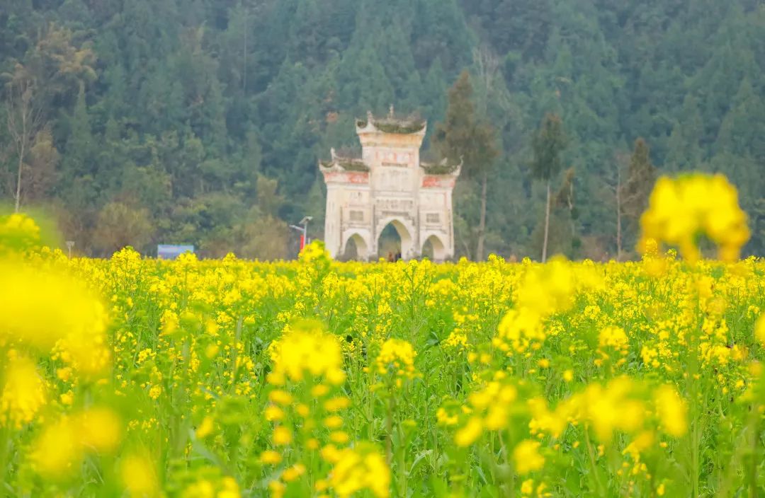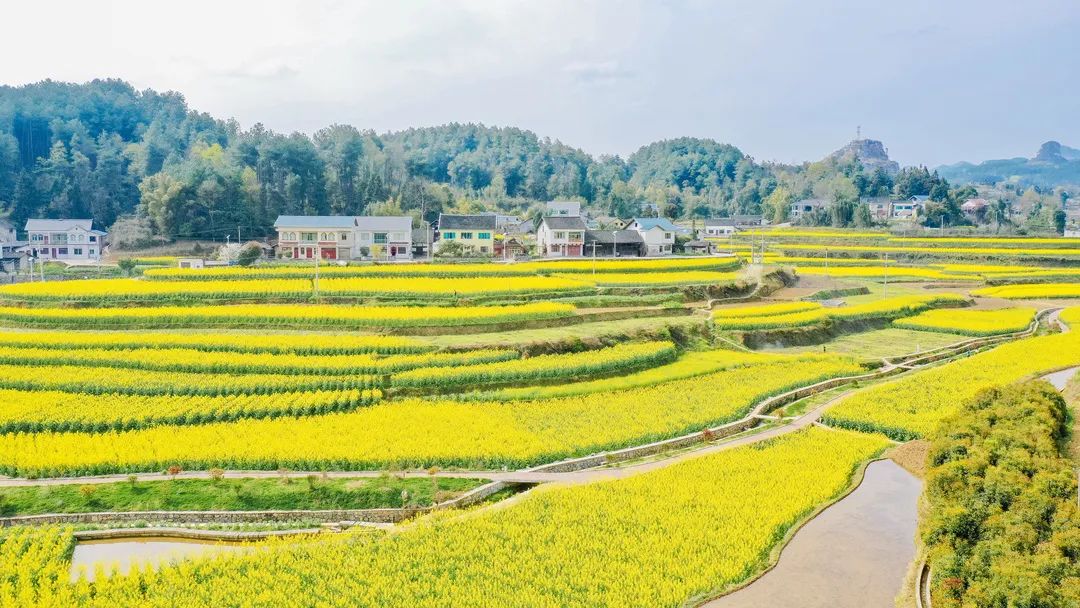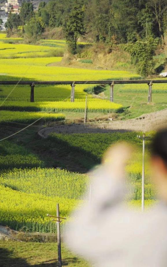 长碛古寨的油菜花正值观赏期,手指随意一框,都是一方肆意飞扬流淌着的金黄。相机随意一拍,都是一幅热情浓郁的春日油画。