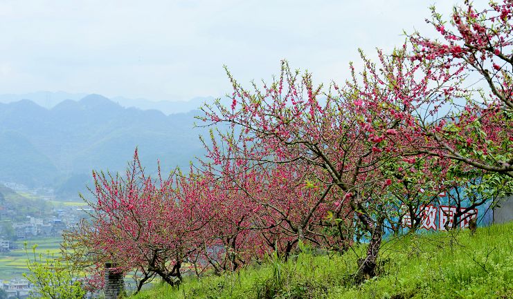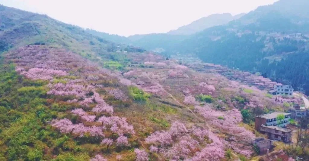 这里每年都会举办桃花节,深红、浅红、桃红、粉红……整片整片的桃花林,像热烈的火焰一样,燃烧在这片山城里,让人魂牵梦萦。