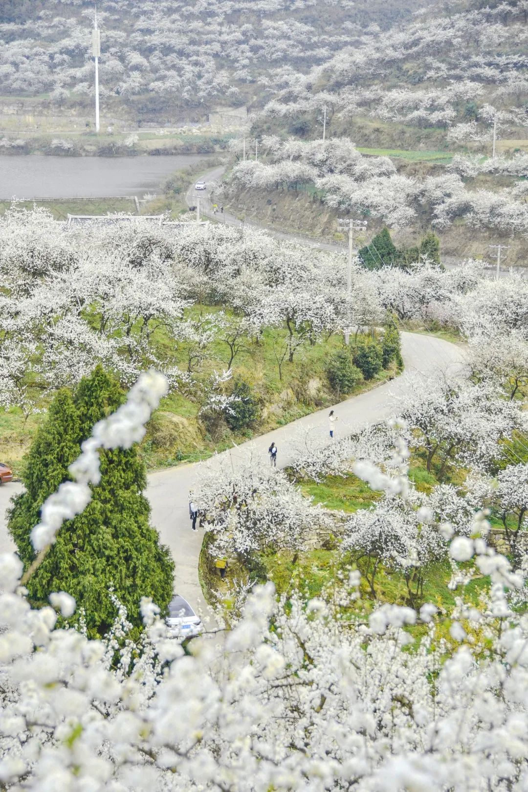 漫步在千亩李花树间,颇有“遥知不是雪,为有暗香来”的意境,让人不知不觉沉醉在这满是清香的花海之中。