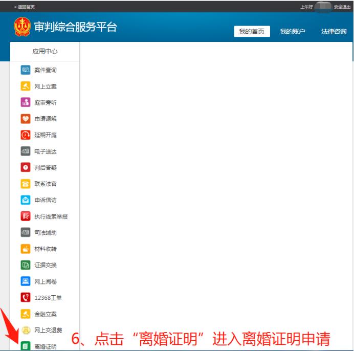 06登录成功后选择“离婚证明”,进入离婚证明申请
