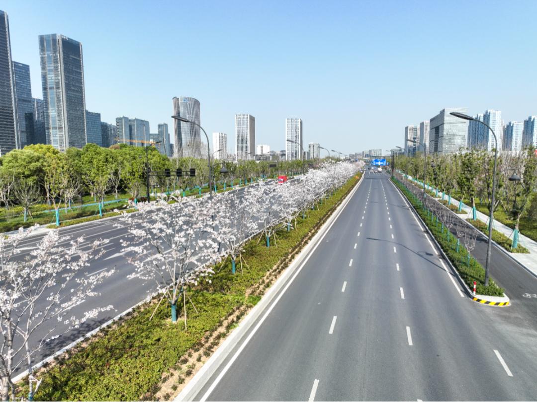 自文一西路(东西大道-荆长大道)提升改造以来,作为“亚运保障项目”重点工程之一,该项目在道路景观打造方面融入了不少巧思。中央绿化带全线种植染井吉野高杆樱花730余株,红绯衣高杆樱花1900余株,机非隔离带种植樱花1000余株……如今的文一西路樱花景观大道,堪称“浪漫天花板”。