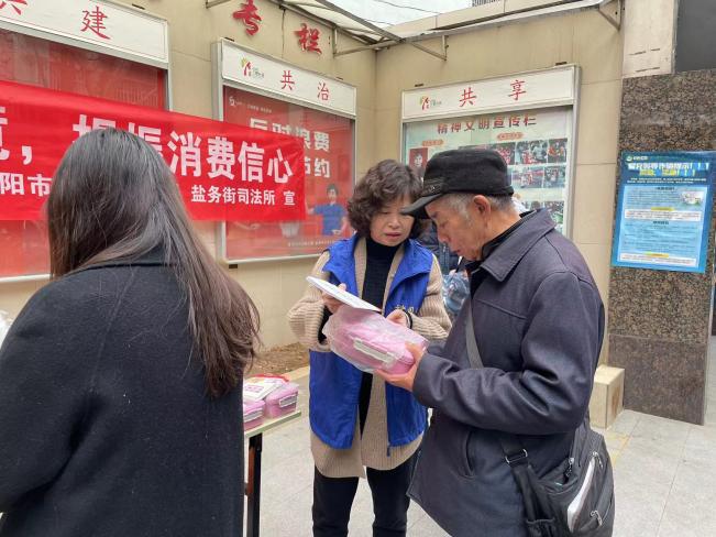 3月15日是“国际消费者权益保护日”。3月15日上午,盐务街司法所联合街道综治办等多部门在盐务街街道政务大厅门口开展了一场“创优消费环境,提振消费信心”为主题法治宣传活动。活动现场,司法所工作人员向来往群众发放《消费者权益保护法》、《民法典与生活同行》、《如何防范非法集资》等法律知识宣传图册,并在现场为群众提供法律问题咨询服务。本次活动发放法治宣传图册300余册,法治小礼品200余份。此次宣传活动,以提高消费者法律水平,自觉维护合法权益为目的,以保护消费者利益为宗旨,广泛宣传相关法律法规知识,增强消费者的法律意识和自我保护能力。通过此次宣传,增强了群众的法治意识和法律观念,引导了群众依法理性消费。