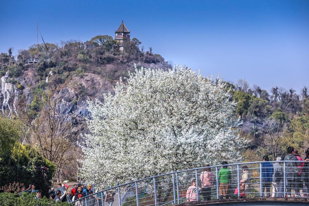 辰山的豆梨正迎来盛花期,一树树白花开得密密匝匝,完美诠释了“昔去雪如花,今来花似雪”的场景。