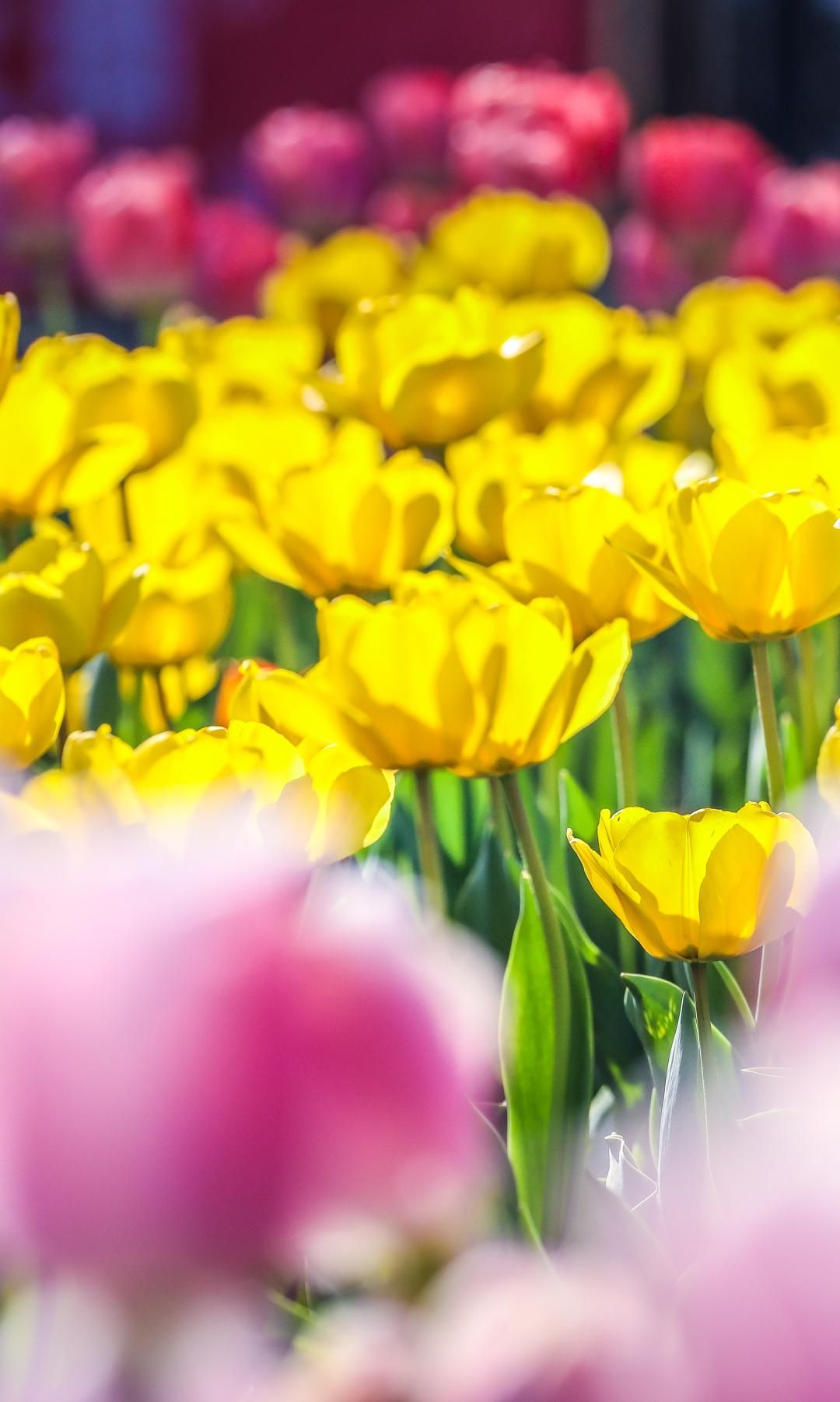 与往年相比,新增的如:粉黄相间的‘珊瑚荣耀’郁金香Tulipa ‘Coral Pride’,深红色‘帝王血’郁金香Tulipa ‘Kingsblood’,粉色的‘快乐玫瑰’郁金香Tulipa‘Rosy Delight’,‘博爱’郁金香Tulipa ‘Big Love’,红白相间的‘玛丽莲’郁金香Tulipa‘Marilyn’,紫粉色的‘梦幻’郁金香Tulipa‘Light And Dreamy’、深红色花边型的‘卡塔尔’郁金香Tulipa ‘Qatar’,‘红色荣耀’郁金香Tulipa ‘Red Pride’,‘橙色荣耀’郁金香Tulipa‘Orange Pride’等40个品种,经过辰山植物园设计师精心搭配,呈现出春意十足的氛围感,现场不少游客盛赞道:“辰山植物园是懂配色的!”