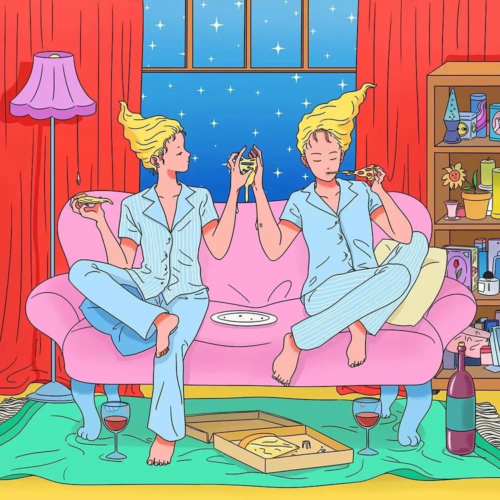 tototatatu是来自韩国的插画师,擅长使用复古梦幻的配色,碰撞出甜蜜浪漫的氛围。