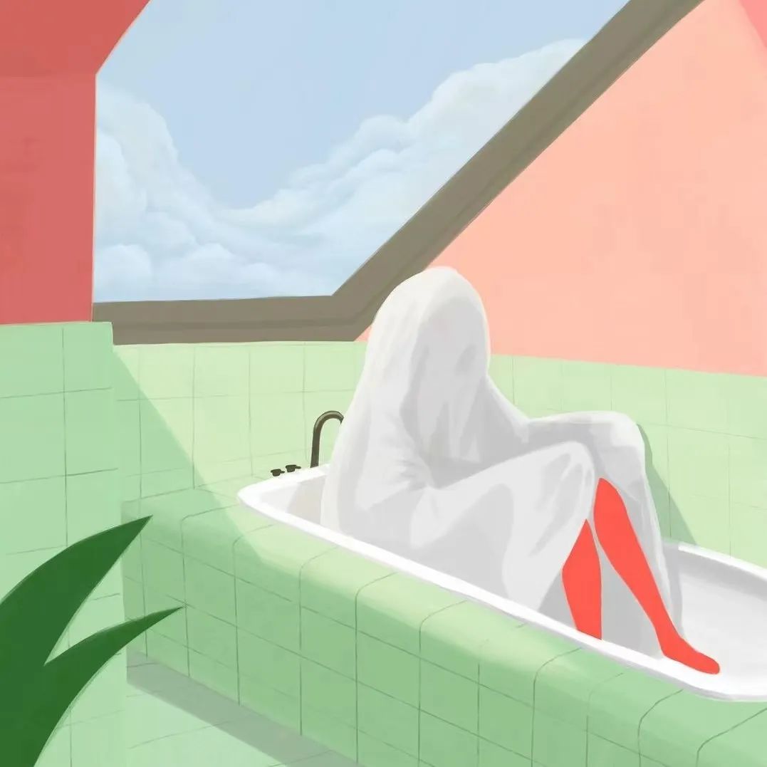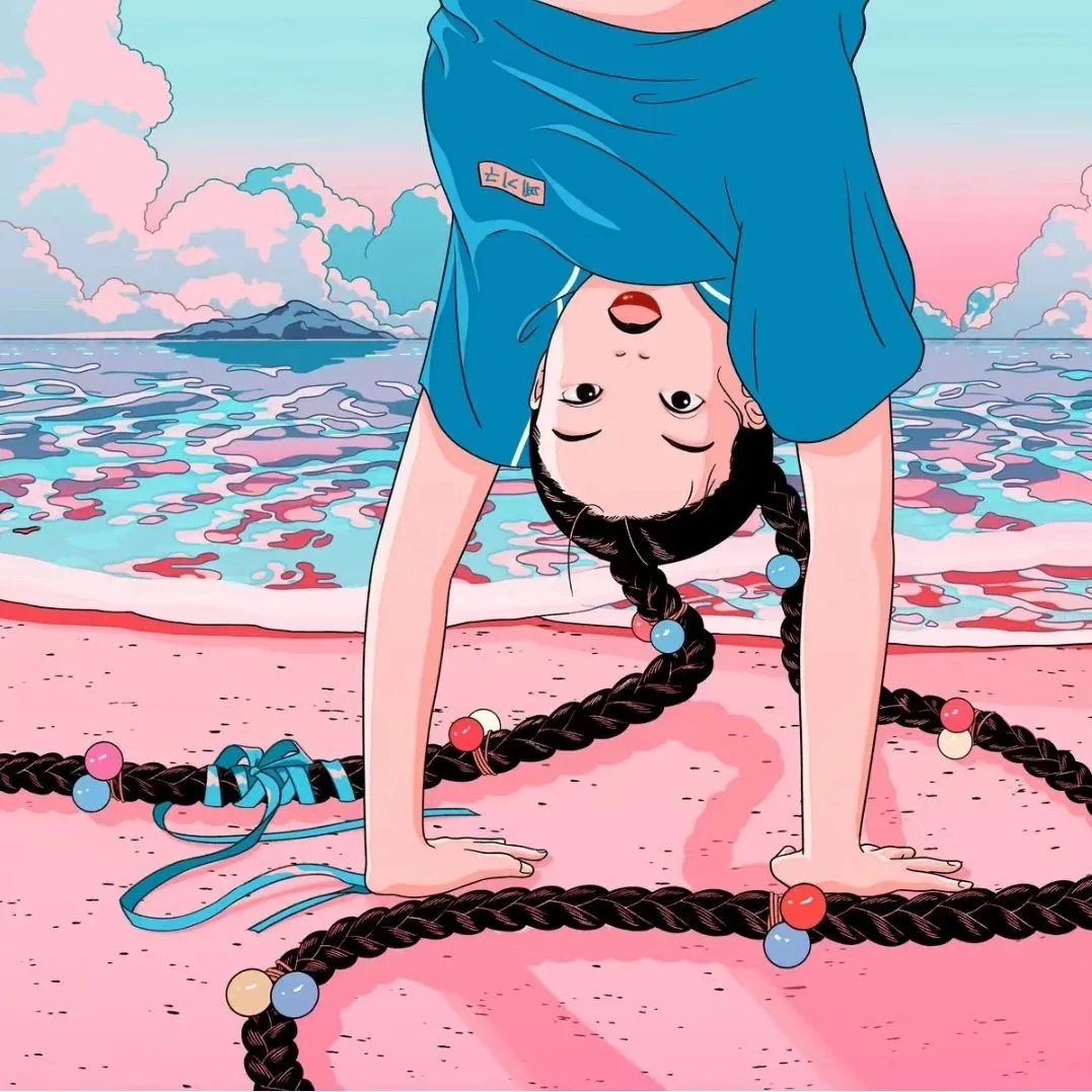 Limi《二分之一》她的作品以粉色、蓝色、薄荷绿等梦幻马卡龙色调为主,线条纤细柔美。