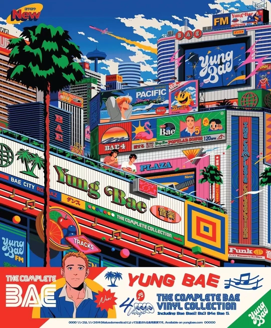 Yung Bae 《THE COMPLETE BAE VINYL COLLECTION》由此延伸出的视觉艺术有着强烈的对比度,高饱和的色彩。