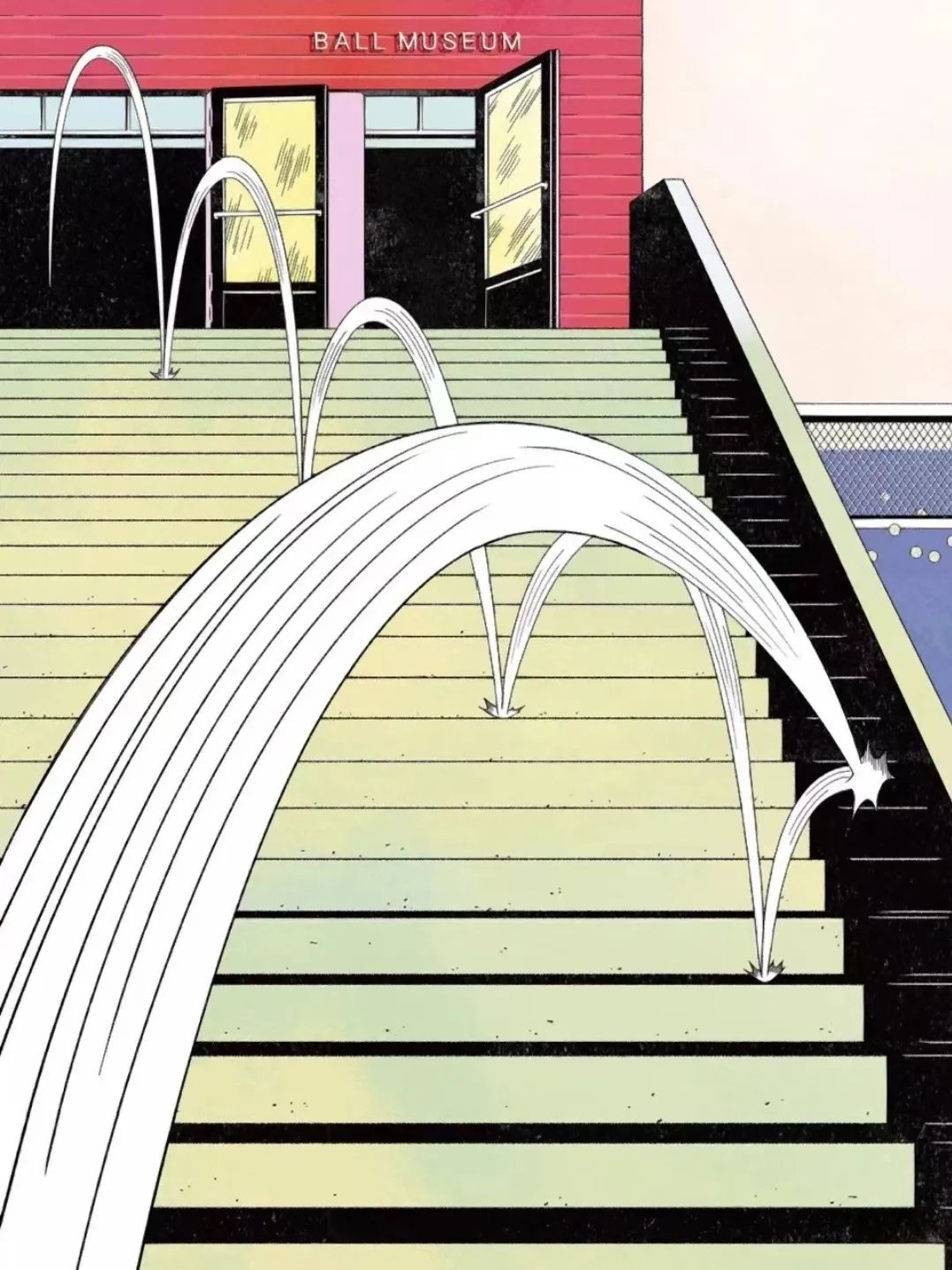 超现实主义插画师 Jee Ook Choi,擅长在日常生活画面中融入古怪的事物或跳动的光束。