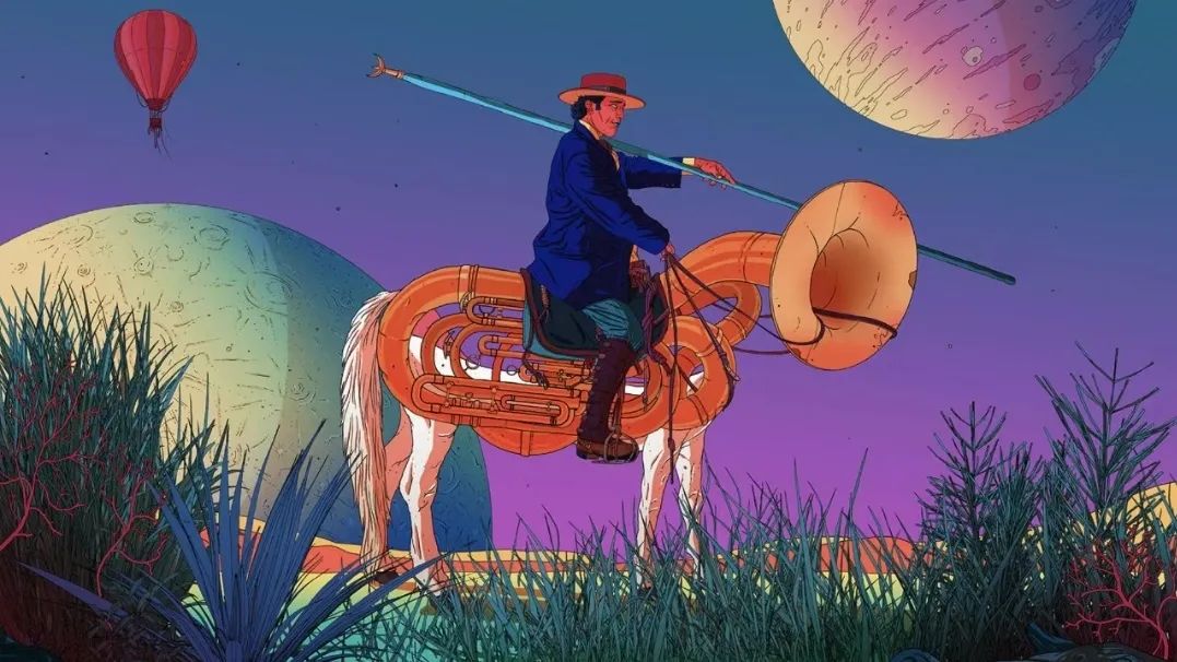 在他的画里,乐器不再是普通的乐器,长笛可以是棕榈树干,上低音号也可以是坐骑的躯体。仿佛进入了爵士乐构成的世界。08