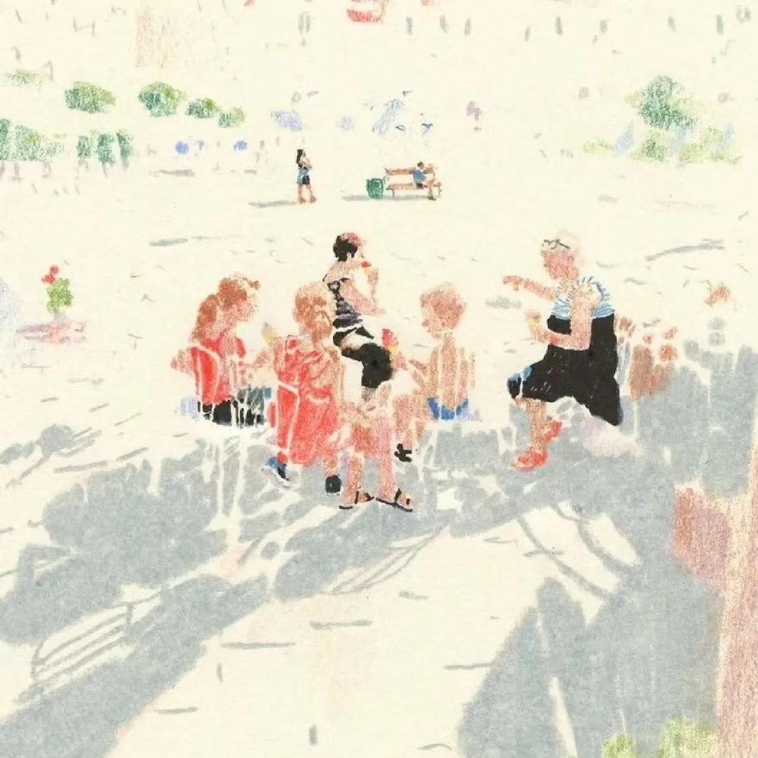 在她的插画中,传统的彩铅绘制和现代感兼具,模糊的物象搭配细致的笔触,清新感十足。09