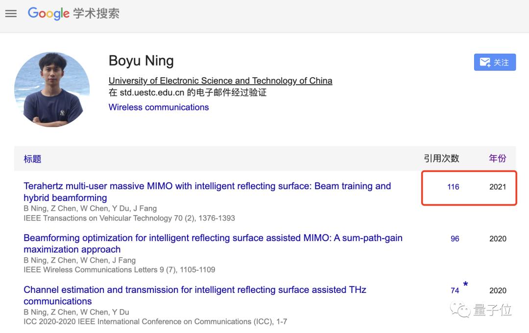 △图源:电子科技大学官方网站根据谷歌学术的数据显示,宁博宇从2017年便开始发布会论文,至今已有25篇,最高引用量为116。