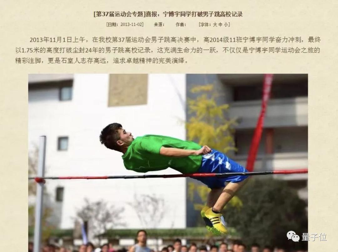 再如跳高方面,宁博宇在高中(成都四中)时期还打破了尘封24年的跳高记录。