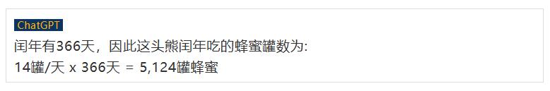 问:一头熊一天吃14罐蜂蜜,请问它闰年吃多少罐蜂蜜?