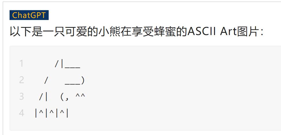 问:请画一张小熊吃蜂蜜的 ascii art 图片?文心一言:很抱歉,我没有构思好这幅作品,请您稍后再试。