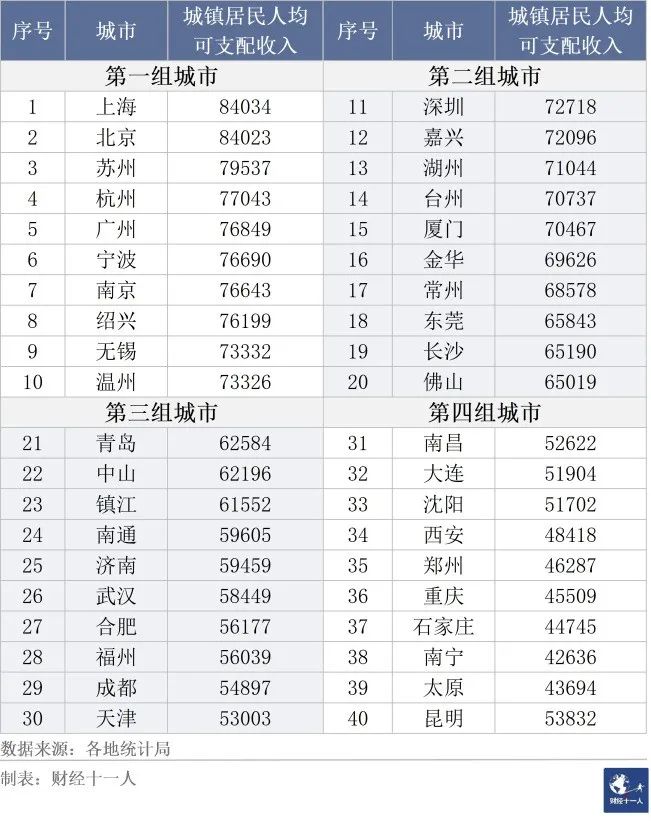 本文利用富裕程度、人口数量、城市层级等标准,选出了40个对中国经济举足轻重的城市,文中简称“中国重点40城”或“重点40城”。这40城,按照居民富裕程度分为四组。如表1所示,第一组最富,第二组其次,第三组再次,第四组最低。