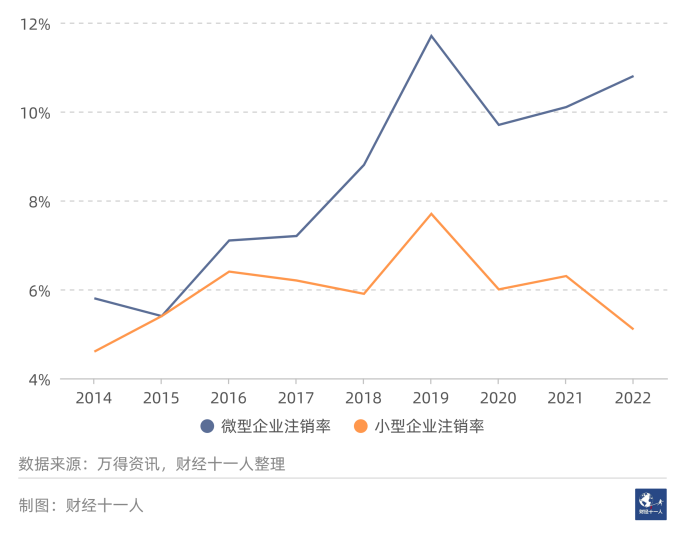 需要注意的是,2014年和2015年的微型企业注销率显著低于2016年之后的数据。从2016年开始,微型企业注销率显著提升,反映出经济形势已经开始走弱。