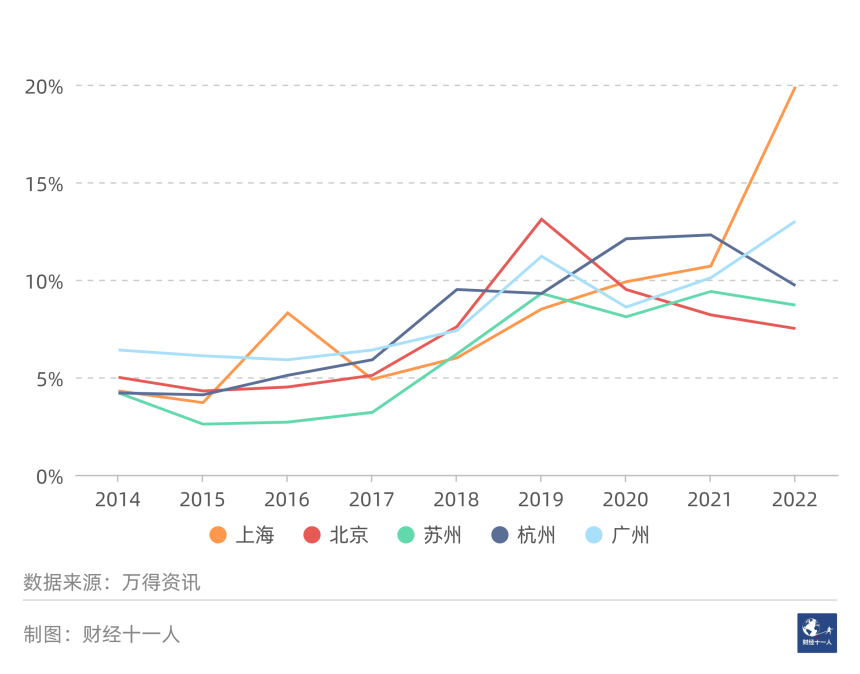 图2: 五大城市2014年-2022年微型企业的注销率变化