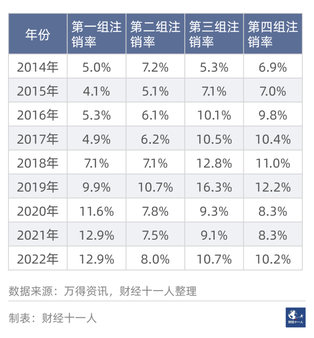 当经济不景气持续多年,富裕城市和不富裕城市的注销率区别变的不再明显(如图3或表6中2020年-2022年所示)。