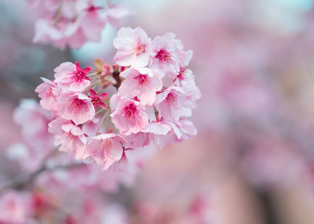 樱花喜欢温暖湿润的气候,主要分布在北半球温带地区,常见于亚洲、欧洲和北美洲,樱花的叶片大多呈椭圆形,边缘有芒齿,花瓣呈伞状分布,花序紧凑,颜色主要有白、粉、红三种。